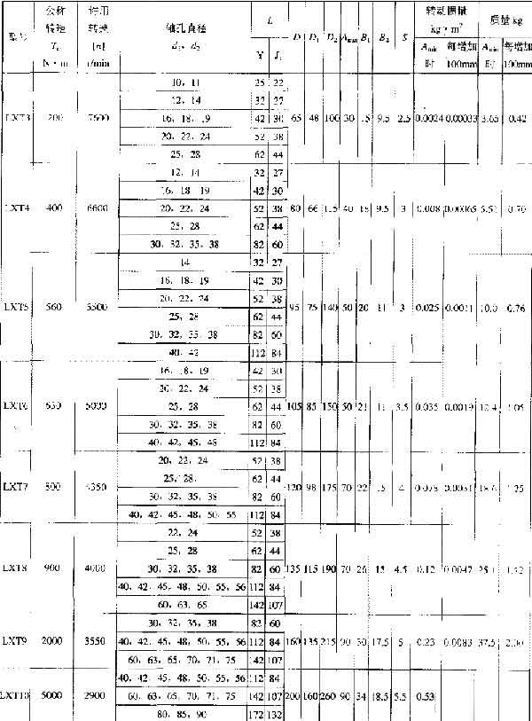 LXT接中間套星形彈性聯軸器基本性能參數和主要尺寸