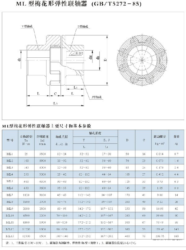 ML系列梅花形彈性聯軸器的適用范圍和性能特點