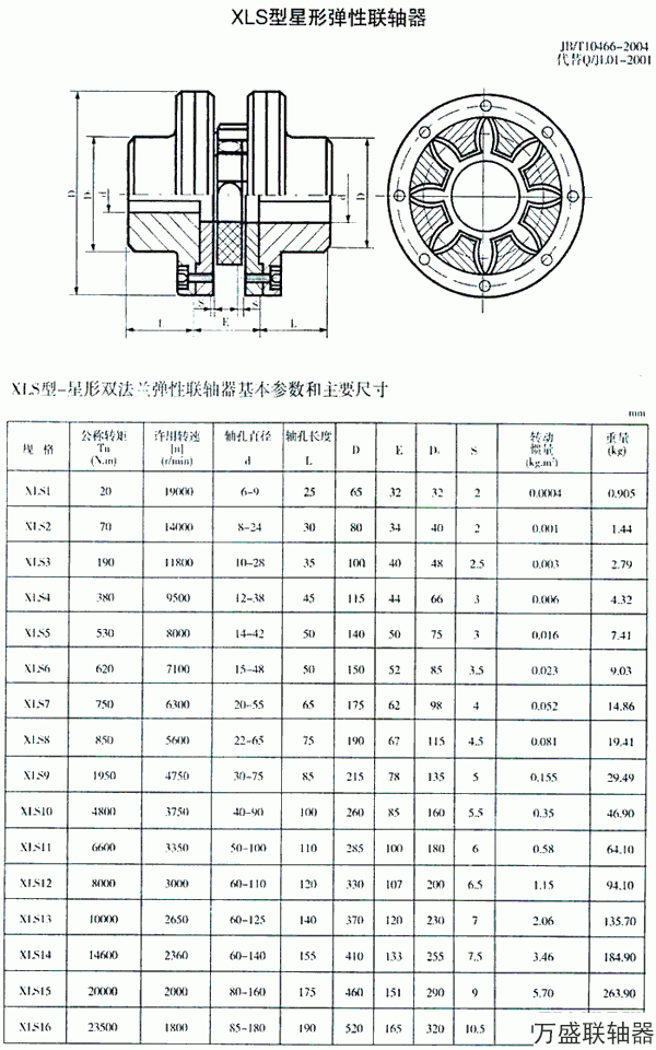 XLS型星形雙法蘭彈性聯(lián)軸器(JB/T 10466-2004)